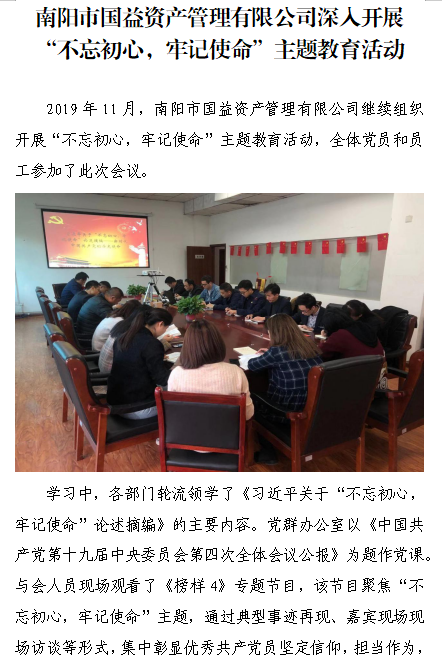 南陽市國益資產(chǎn)管理有限公司深入開展“不忘初心,牢記使命”主題教育活動